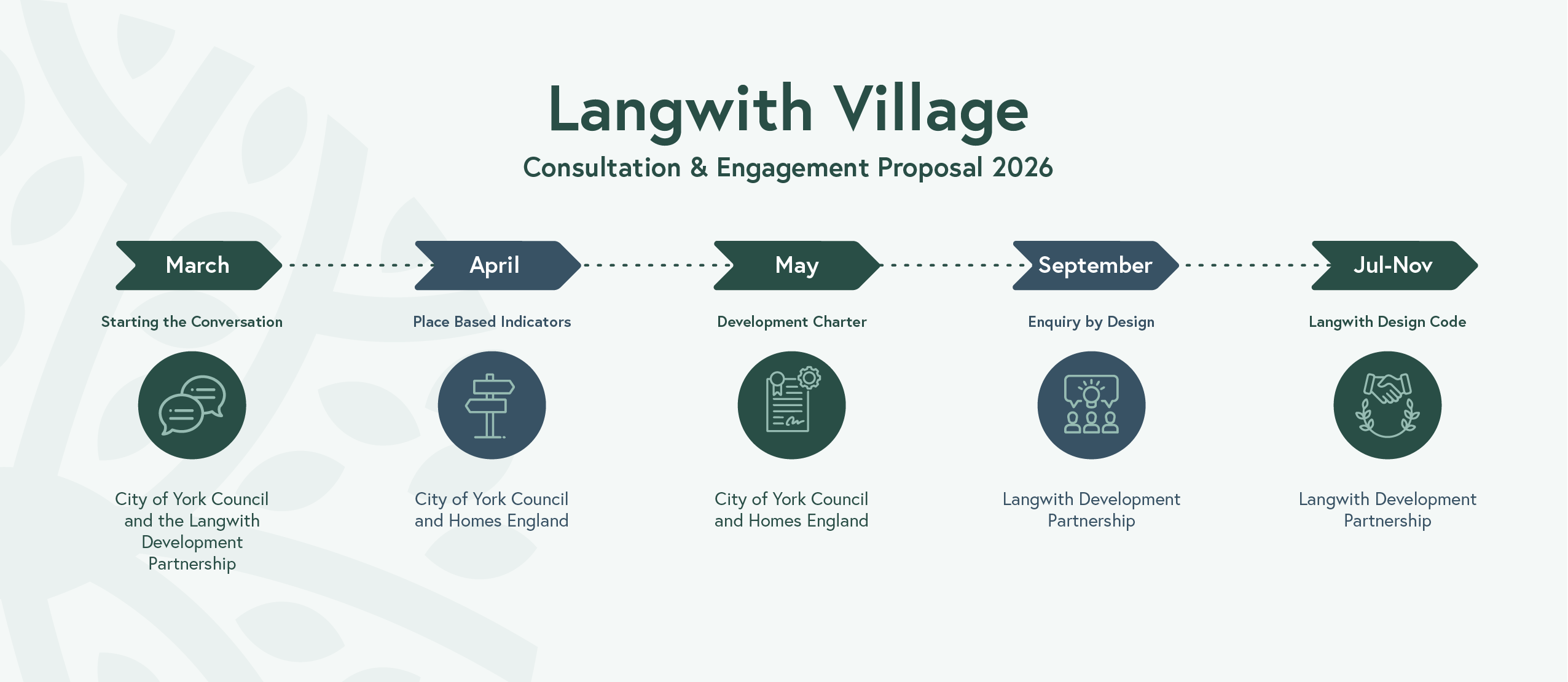 Alongside City of York Council and Homes England, we have developed a five-stage engagement process on our emerging plans for Langwith Village.